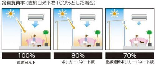 熱線吸収タイプは、日差しの熱を吸収する特殊なポリカーボネートでつくられており、