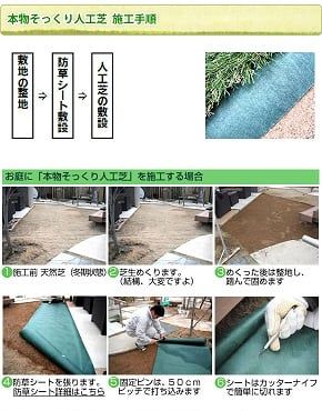 こちらを参考にして頂ければ、スムーズに芝を敷けますよ