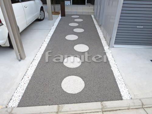 白く丸い飛び石がとてもキュートなアプローチです