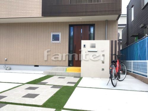 人工芝で明るいアプローチに