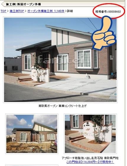 すると、詳細ページにかわります。 施工例ごとに現場番号を設定しておりますので、