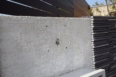 2、接着剤を表札と壁、両方にたっぷりと塗ります。