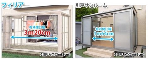 例えば、フィリア2間サイズの場合、有効開口幅が3m20cmあるのに対して、