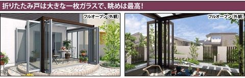 フルオープンできる折りたたみ戸は、一枚一枚が大きく、