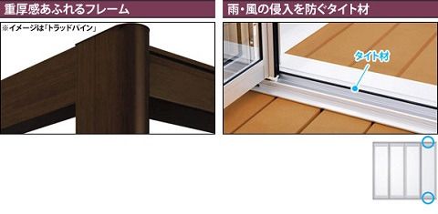 折りたたみ戸を閉じると、タイト材き折りたたみ戸枠に密着し、