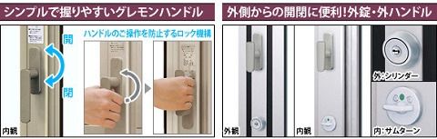 外からの開閉に便利な外錠付きです。
