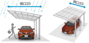 間口が大きくなっていますので、車への乗り降りの際に雨に濡れないように配慮できます