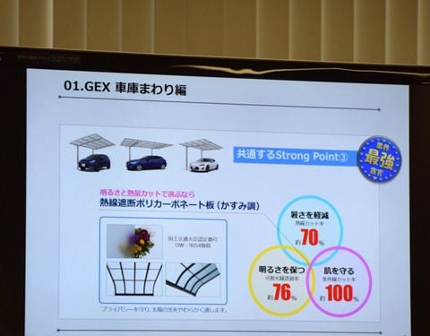 熱線遮断と普通のポリカの屋根下の温度差は10度くらいあるんです