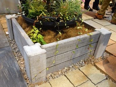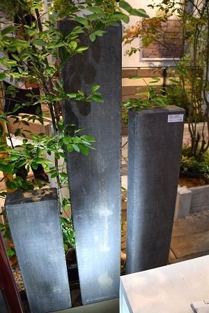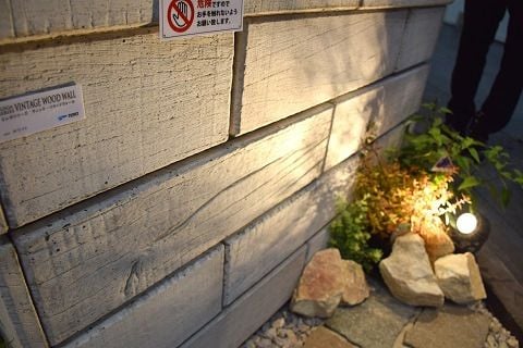 、コンクリートブロックに木目の板(コンクリート製)が張りついています。