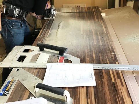 コンロやシンクまわりのカットも手作業で行います
