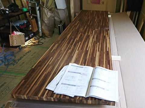 一枚板で納品されるので、キッチンのサイズによって微調整が必要になります