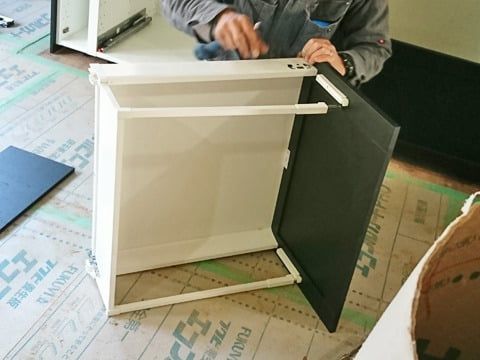吊り戸棚や引き出し部分は工場で作成されますが、