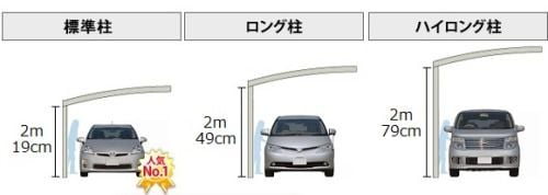カーポート柱の高さは3種類ありまして、おススメは「標準柱」になります