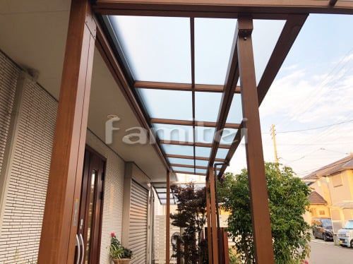お庭の屋根に、木目のカッコいい木製調テラスがあると、