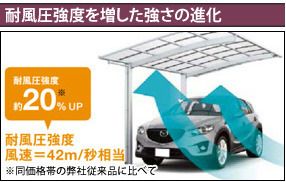 ネスカRの耐風圧強度は、風速38m/秒相当でしたが、