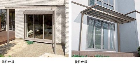 通常のテラス屋根は前柱仕様ですが、