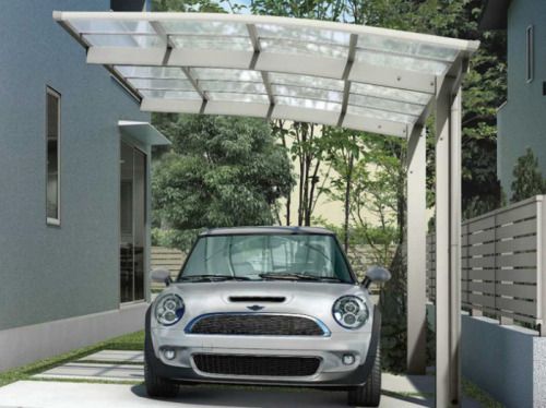 さまざまな連棟・合掌が可能で、シンプルな片側支持タイプのアール屋根カーポートです。