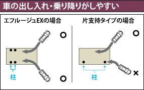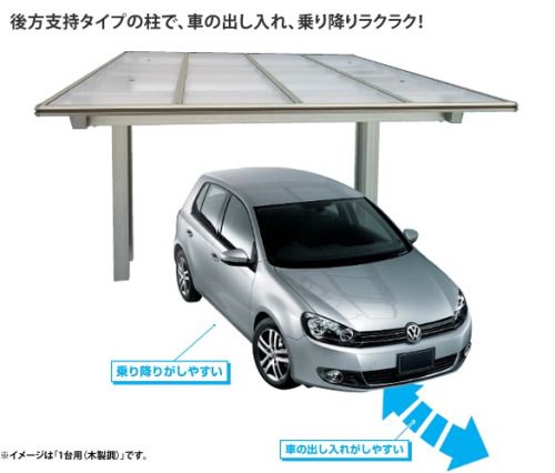 後方支持タイプなので、駐車スペースにゆとりができ、車の出し入れや乗り降りもラクラク行えます