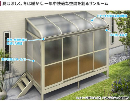 オプションとして、物干しセットやアルミステップ、クリアネット網戸などがございます。