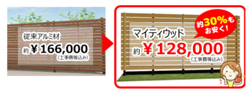 しかも、素材には業界初の「ポリスチレン樹脂」を採用しているから、同サイズのアルミ材に比べて約30%ほどの低コストのフェンスが実現しました!