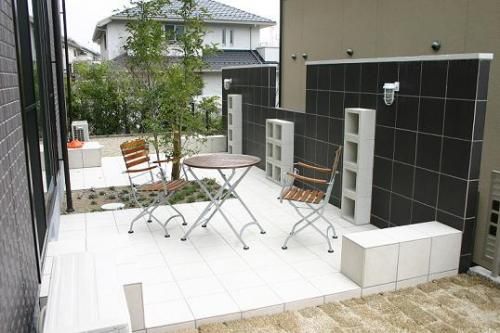 こちらのお客様はお庭にタイルデッキを広く作られています