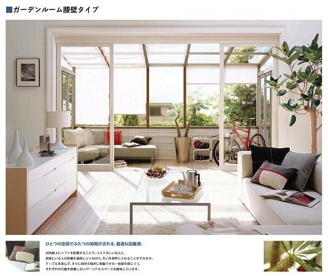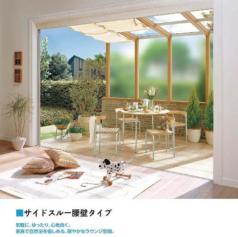 サンルームにしたりサイドをあけてテラス屋根のように使ったりも出来ます