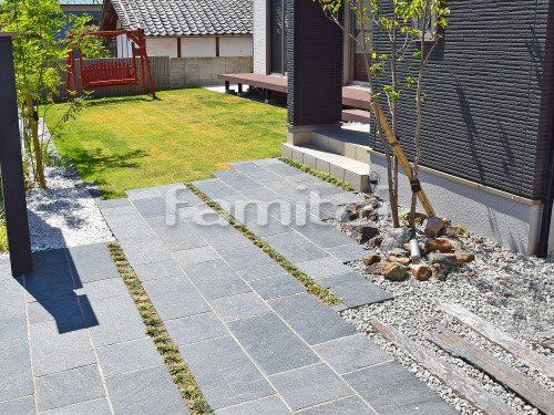 こちらも、お家の外壁に合わせたグレーの床石貼りです