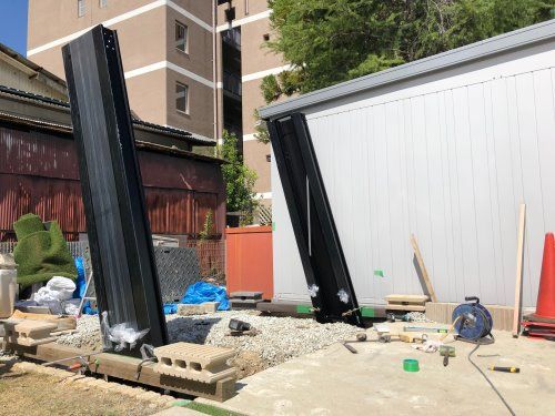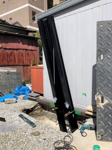 後方柱の仮設置が完了しました
