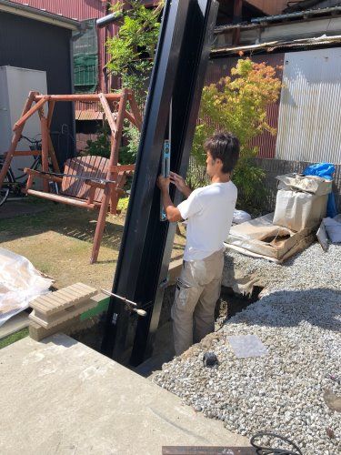 次回は基礎穴を生コンクリートで埋め、柱をしっかり固定する作業を行います