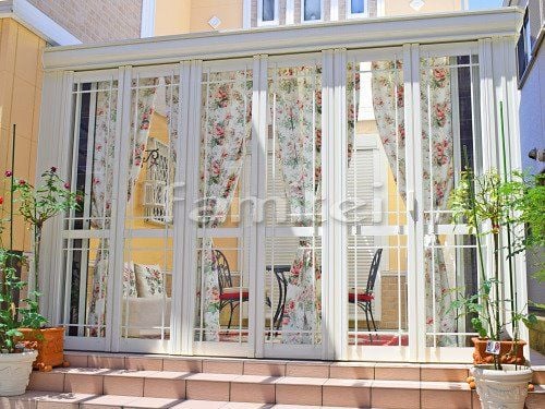 お好みのカーテンを取付て、ガーデンルームを華やかにすることも可能です