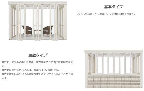 基本タイプは、扉を全開にすることが可能で開放感があります