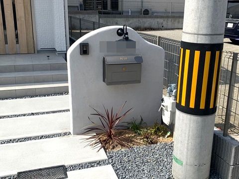 門柱はアールを付けて優しい雰囲気に仕上がってます。
