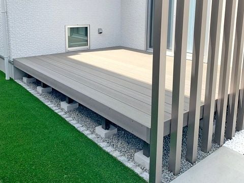 お庭には人工木のウッドデッキと目隠しの角柱です。