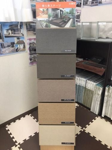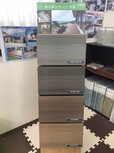 人工木デッキはLIXILの樹ら楽ステージの木彫です