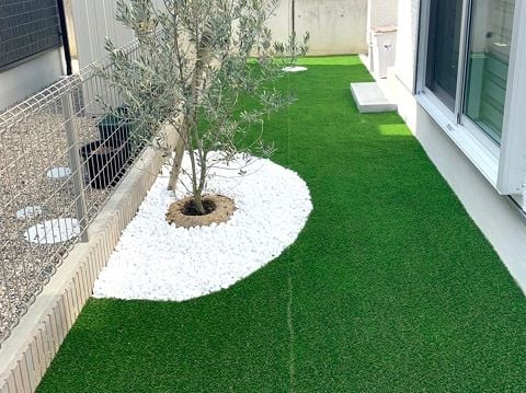 お庭は人工芝と白い砂利でコントラストが綺麗ですね