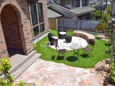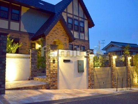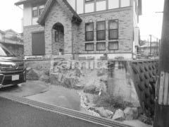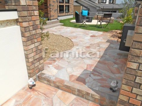 門柱から玄関とお庭に続くアプローチは乱形石で高級感がありますね