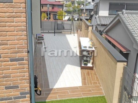 お庭でバーベキューをよくされるとのことで大き目のデッキとガーデンシンクを施工させて頂きました