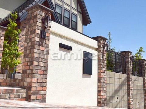 門柱はお家と合わせてポイントにタイルを貼ってます。