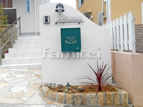 アールのついた門柱もグリーンのポストがポイントになっていいですね