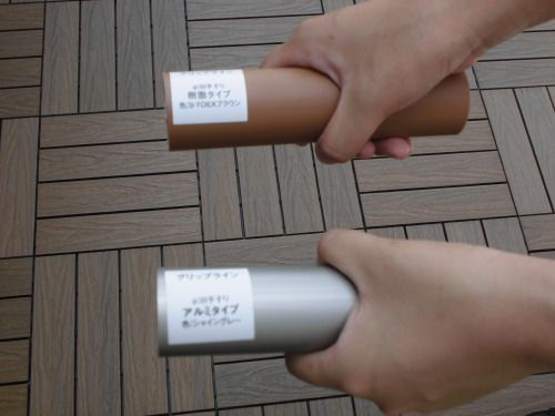 本日は、サンプルを用いて、手すりがアルミタイプと樹脂タイプで