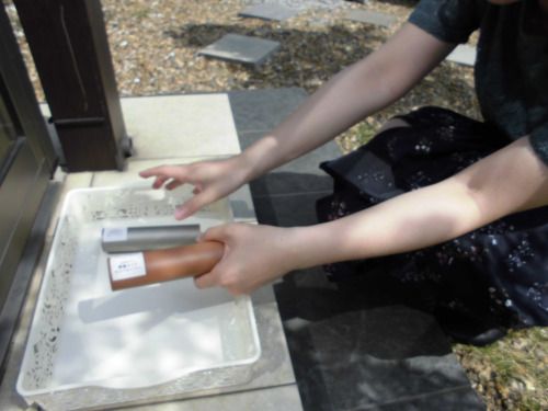 よく日の当たる南向きのガーデンルームのタイル上に置いておきます。