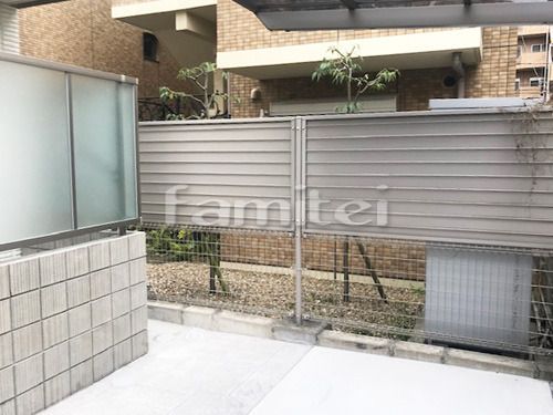 お隣との境界部分は、よりしっかりと目隠しできるルーバータイプのフェンス「フェンスAB YL3型」で目隠ししています