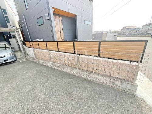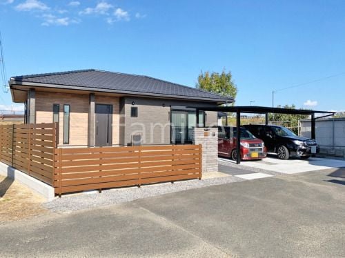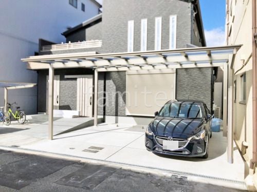 横幅2mあるスタイリッシュなタイル門柱が印象的です