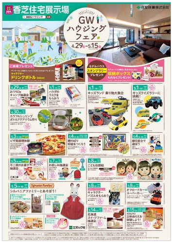 4/29(金祝)〜5/15(日)までの間、「GWハウジングフェア」を開催いたします