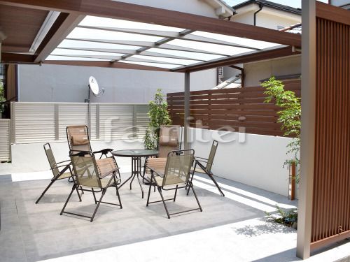 こちらの現場では、フレーム(骨組)やルーフ(屋根)、スクリーン(目隠し)などを組み合わせている