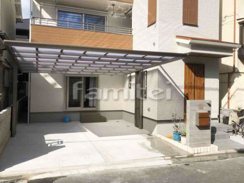 カーポート:LIXIL アーキフラン 横2台用 F型フラット屋根