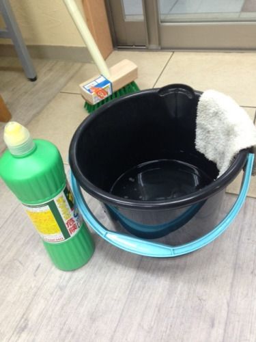 まずはおトイレ用洗剤を少し混ぜた水を流し、