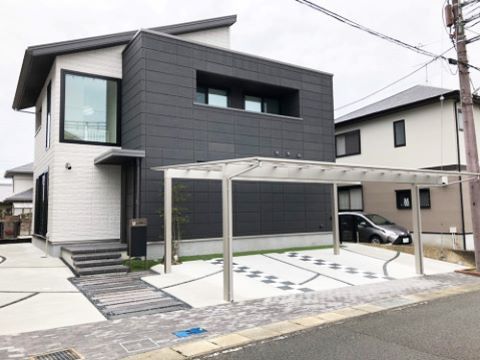 窓のサッシとカーポートのお色味を合わせているので