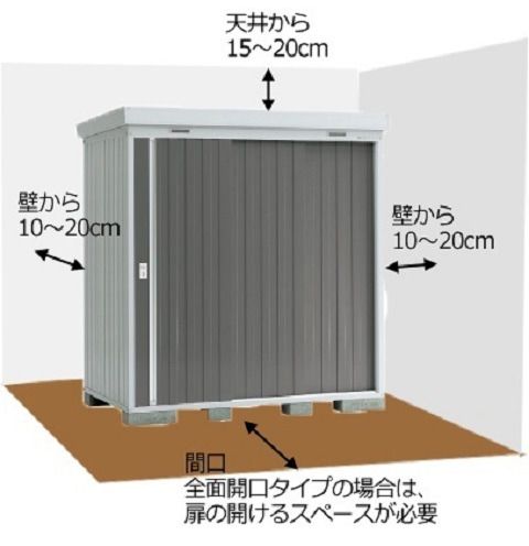 物置の前後左右は10〜20cm程の作業スペースが必要です