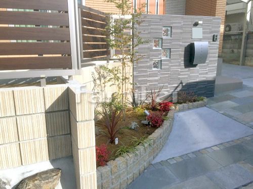 ピンコロ石の花壇 新築 シンプル オープン 太子町